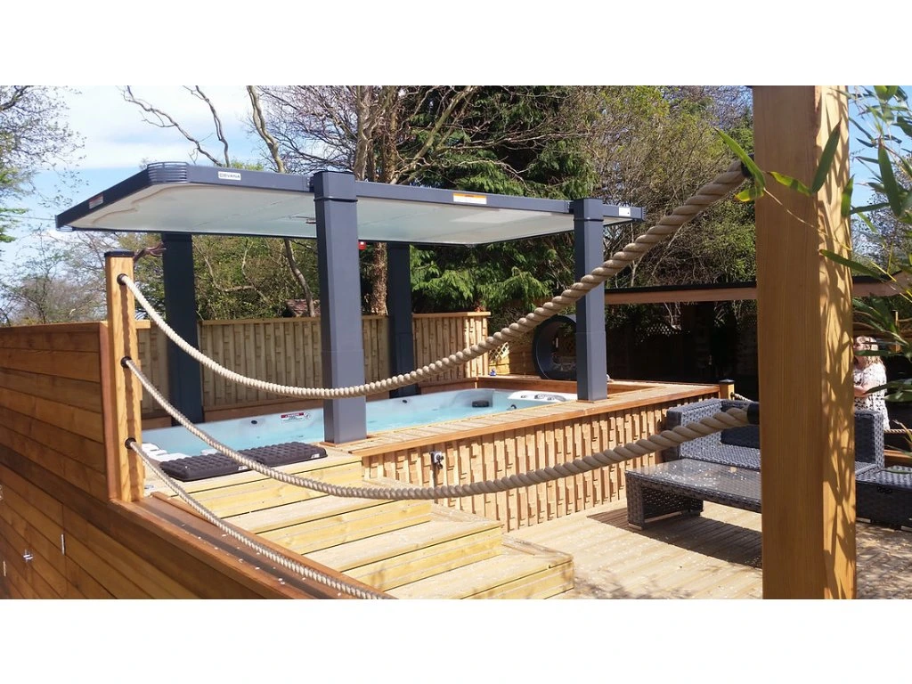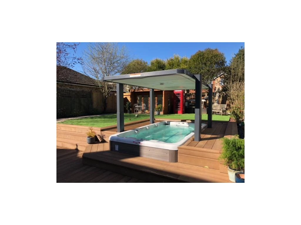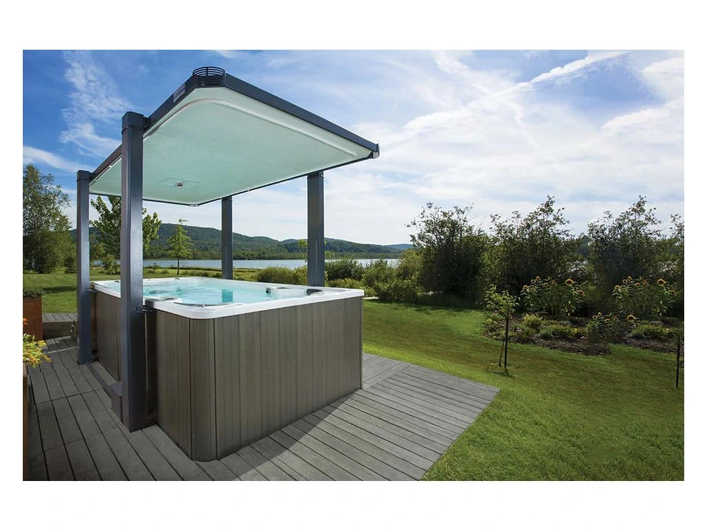 Když je zastřešení zavřené, tento robustní kryt s výrazně vyšší izolační hodnotou než tradiční kryty vířivek poskytuje bezkonkurenční ochranu a zároveň zabraňuje nežádoucímu přístupu dětí, zvířat i nezvaných osob.