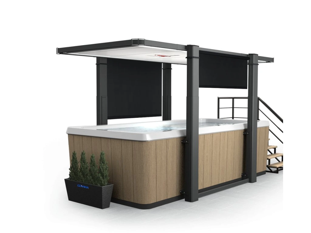 Objevte naši nabídku bočních rolet navržených speciálně pro model Covana LEGEND. Vyberte si z různých úrovní (ne)průhlednosti a užijte si svou vířivku v naprostém soukromí. Spolu s vysunutím zastřešení se automaticky rozvinou a pak opět zarolují, nemusíte se o nic starat.