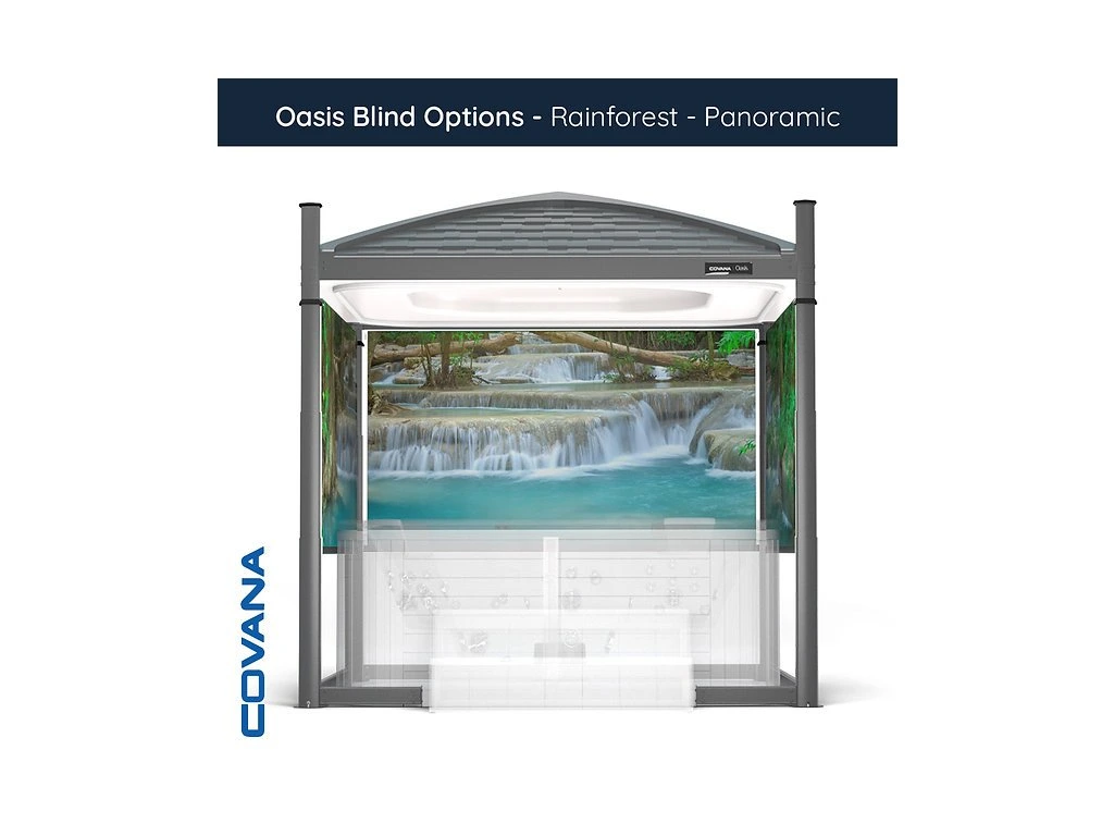 Objevte naši nabídku bočních rolet navržených speciálně pro model Covana OASIS Midnight. Vyberte si z různých úrovní (ne)průhlednosti a užijte si svou vířivku v naprostém soukromí. Rolety je možné nainstalovat až ze tří stran zastřešení pro úplnou intimitu a klid.