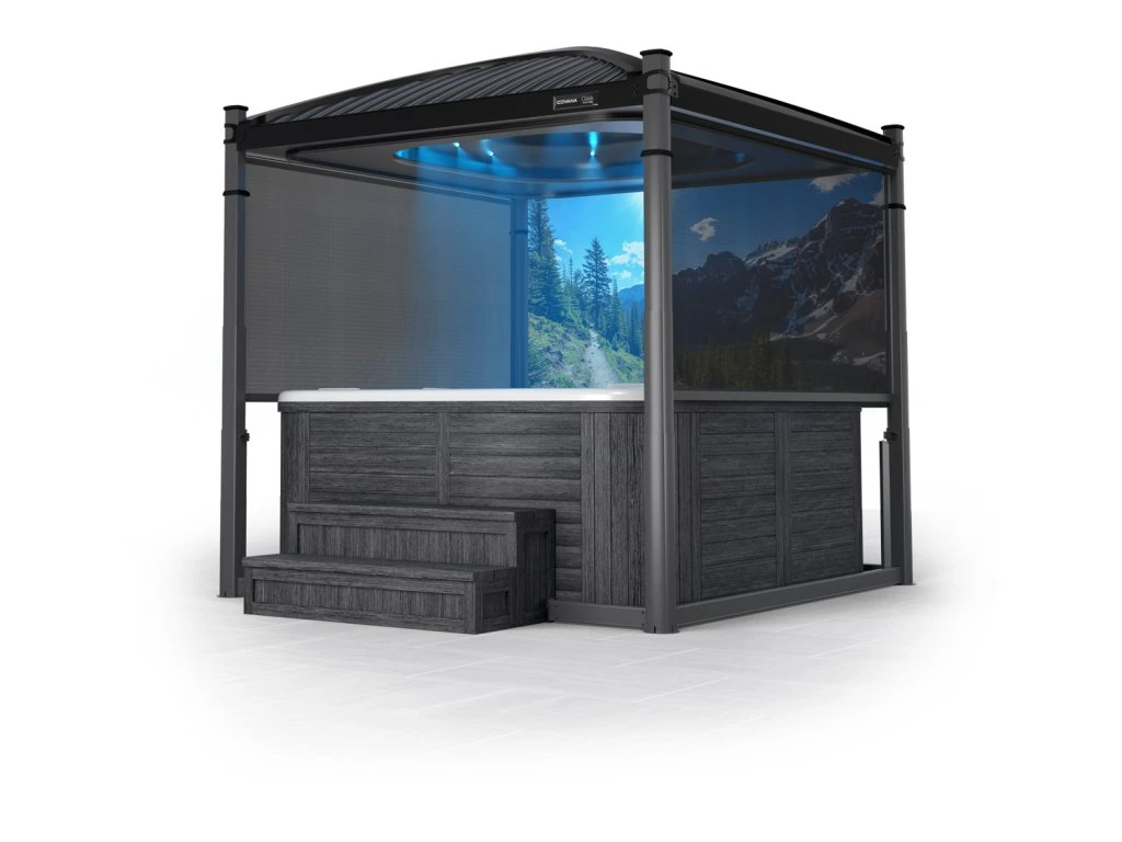 Covana Oasis Midnight vyniká svým klidným a elegantním černým stropem a střechou. Snadno ladí s vaší vířivkou i s celým relaxačním prostorem a nechává vyniknout oslnivou krásu okolní přírody. Za soumraku se Oasis Midnight přirozeně začlení do prostředí a vytváří útulnou a uvolňující atmosféru.