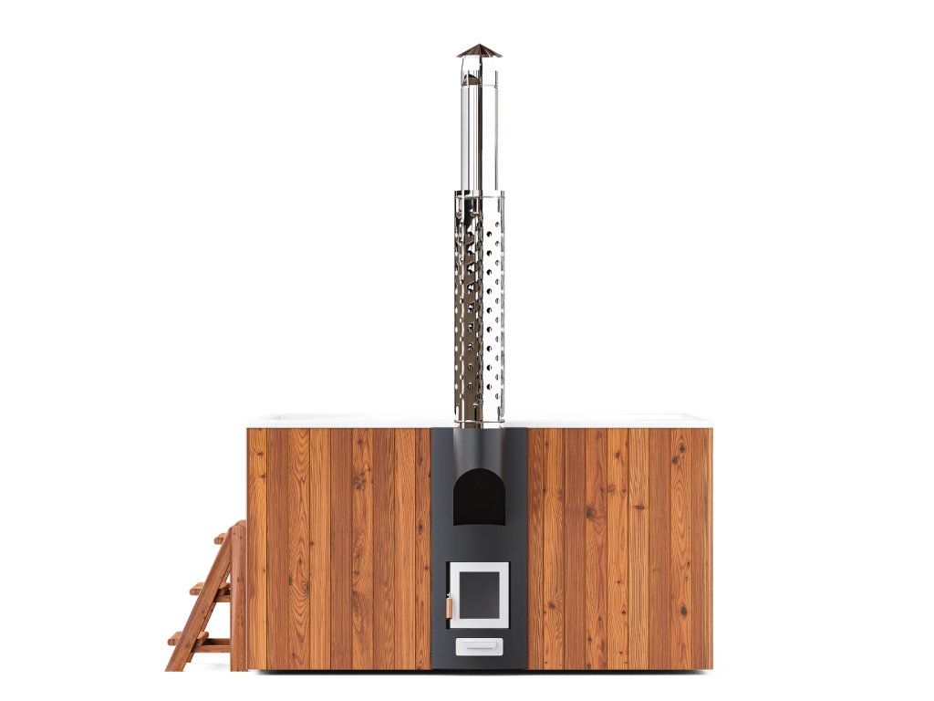 Káď QUATTRO 200 lze používat venku za každého počasí. Integrovaná kamna POLARSPA o výkonu 35 kW, vyrobená v exkluzivním designu, ohřejí vodu na příjemnou teplotu za 1,5–2 hodiny. Kamna jsou naprosto bezpečná – mají ochranný štít na komínu, žáruvzdorné sklo, žádné ostré rohy a veškeré inženýrské sítě jsou skryty uvnitř.