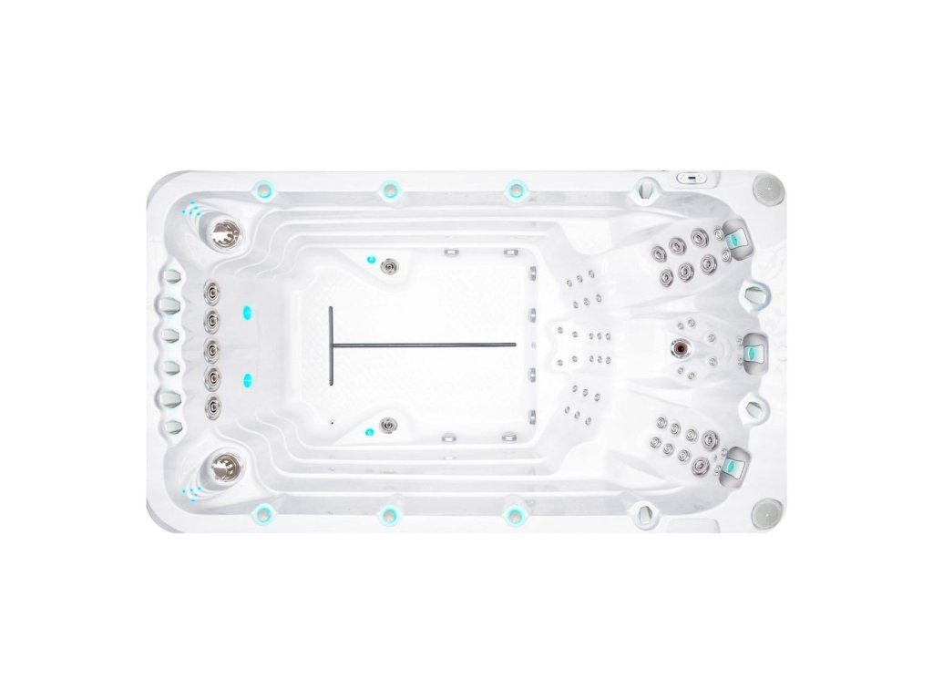 Jedná se o unikátní lineární umístění pěti silných protiproudých trysek, které vytváří příjemný a konstantní protiproud v celé šířce bazénové části. Tlak vody je vždy směřován do všech trysek protiproudu, kdy zapínáním jednotlivých čerpadel zvyšujete intenzitu protiproudu ve všech tryskách najednou. Toto je oproti konkurenci revoluční řešení protiproudu, které umožňuje jednoduché plavání začátečníkům a méně pokročilým plavcům. Díky tomuto řešení je protiproud široký a efektivně proudí těsně pod hladinou vody, což umožňuje pohodlné plavání s hlavou nad hladinou. I v takto krátké vířivce s protiproudem můžete opravdu plnohodnotně plavat.