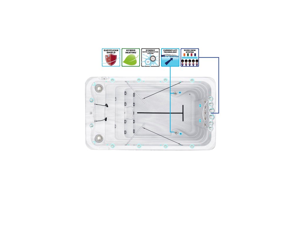 Fitness kolekce swim spa vířivek poskytuje možnost síly a intenzity plavání, která bude odpovídat Vašim nárokům. Je designována pro rekreační plavce i pro opravdu zapálené sportovce. Díky inovativnímu systému Current-Lift TechnologyTM se automaticky reguluje tlak ve spodních tryskách umístěných na dně vířivky, čímž je plavec více nadnášen (má-li nízkou intenzitu protiproudu), nebo je naopak méně nadnášen při vyšším stupni protiproudu. Čím rychleji plavete, tím méně potřebujete nadnášet a naopak.
