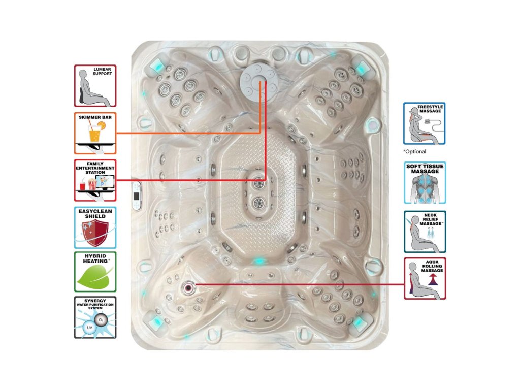 Standartní Passion Spas výbava zahrnuje jemnou vzduchovou masáž, StarBriteTM LED osvětlení a systém aromaterapie.