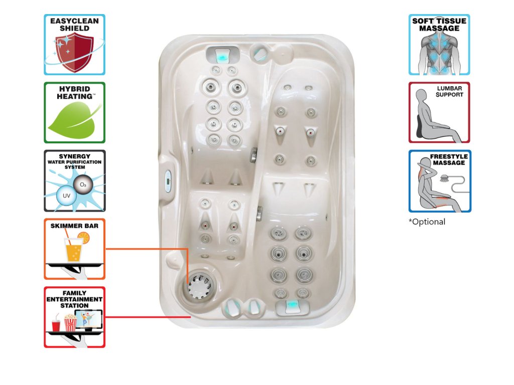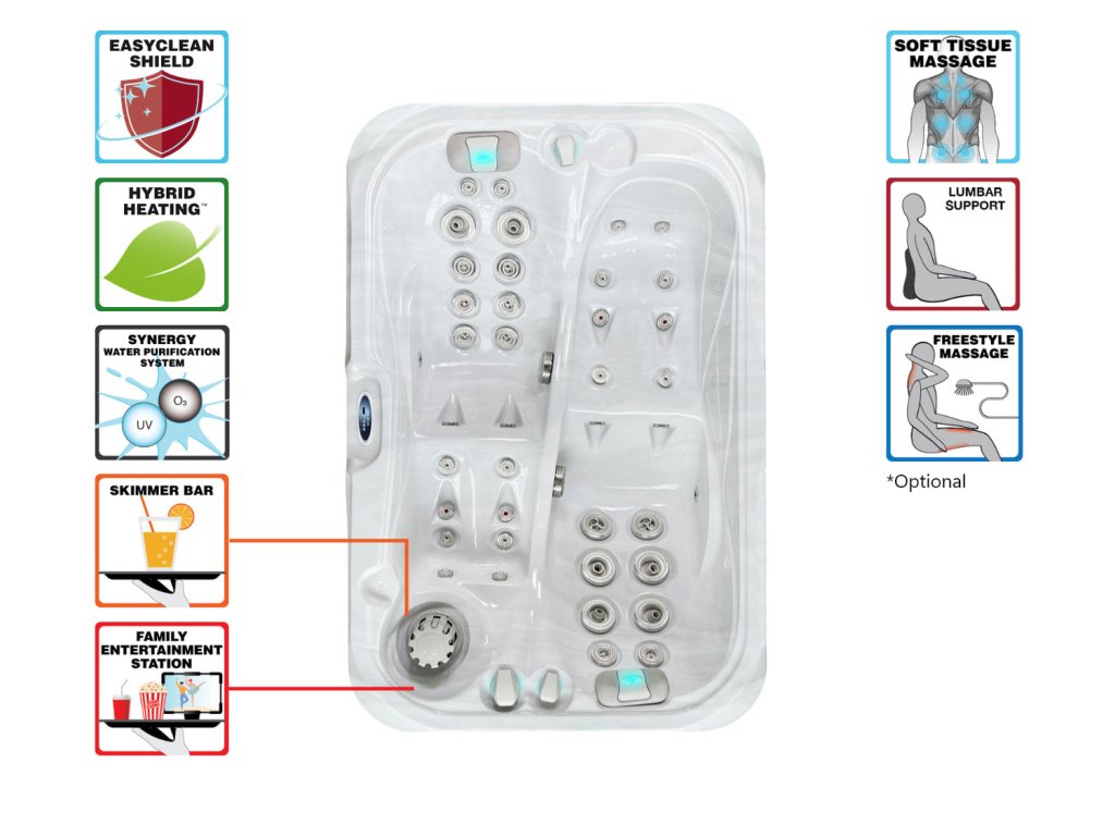 - Snadná údržba: snadno přístupné části a inteligentní filtrace udržují vaši vířivku čistou a průzračnou.