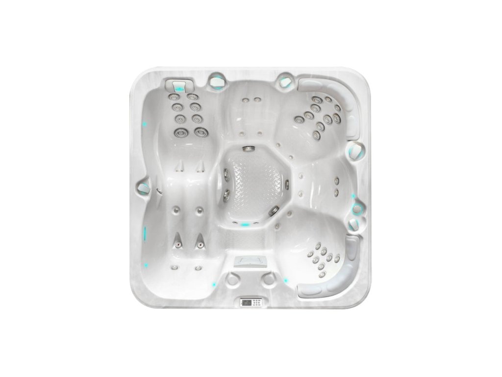 Měkčené a podsvícené hlavové opěrky pozdvihují celkovou LED chromoterapii. Vše je doplněno vzduchovou masáží a designem, který přispívá ke geniálnímu zážitku v této vířivce.